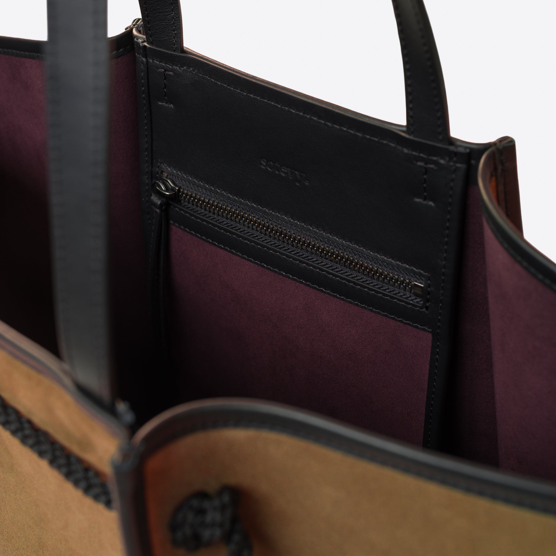 Léger et fonctionnel, ce modèle est doublé en Alcantara prune. Il est doté d'une poche zippée et d'une poche plaquée, offrant un rangement astucieux et élégant.